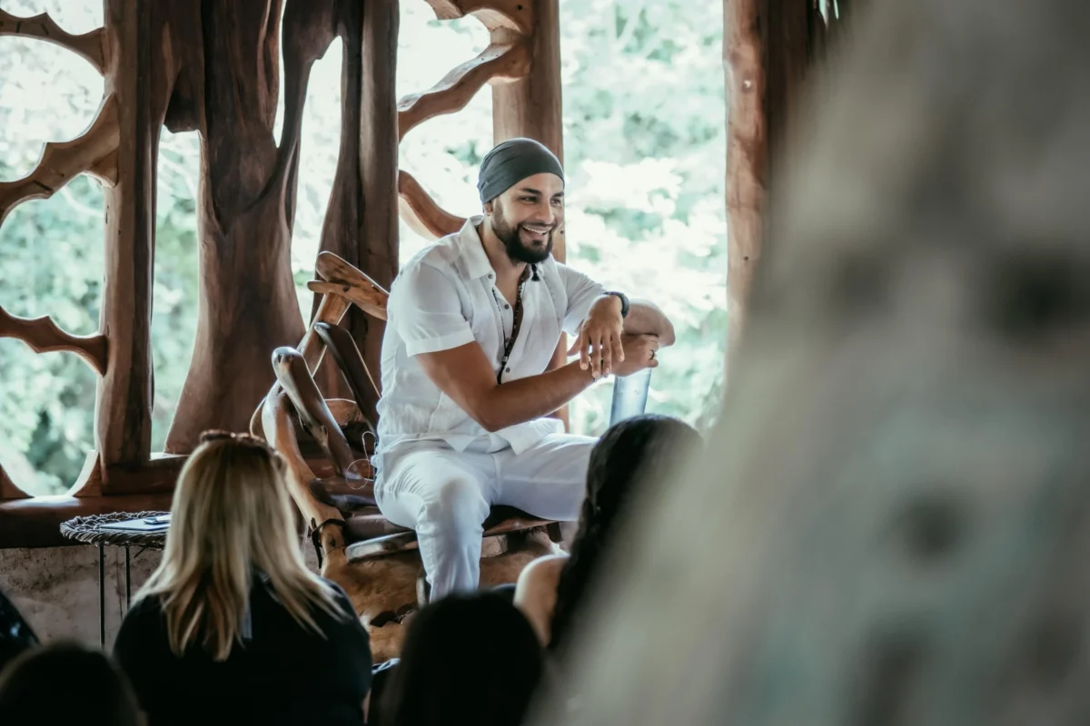 Ricardo muestra la simplicidad de estar en contacto con la divinidad, mediante la acción de la vida cotidiana. Iremos a lo profundo de la acción y verán cómo para estar conectado con la divinidad no necesitas de religión, corrientes espirituales, filosofías, rituales, etc. Puedes estar conectado con el todo, mientras cocinas, barres, corres, saltas, ries, lloras… «El verbo es Dios»